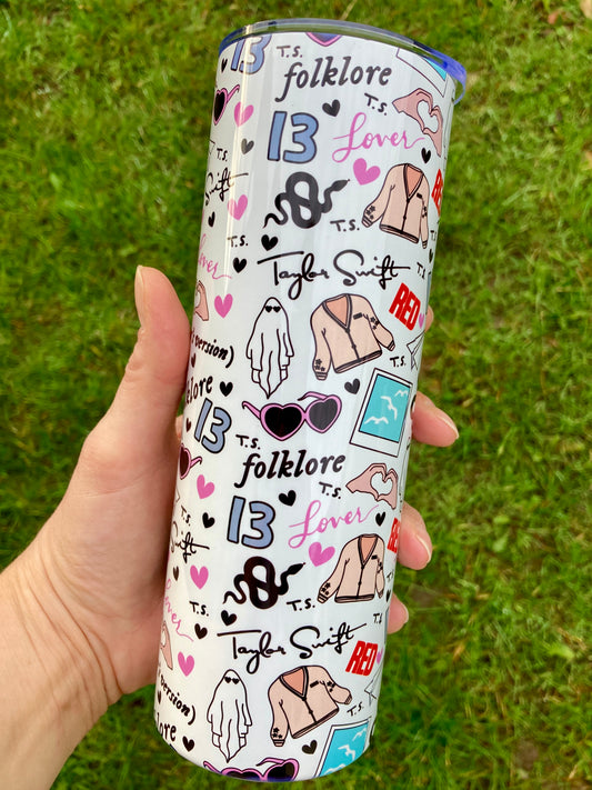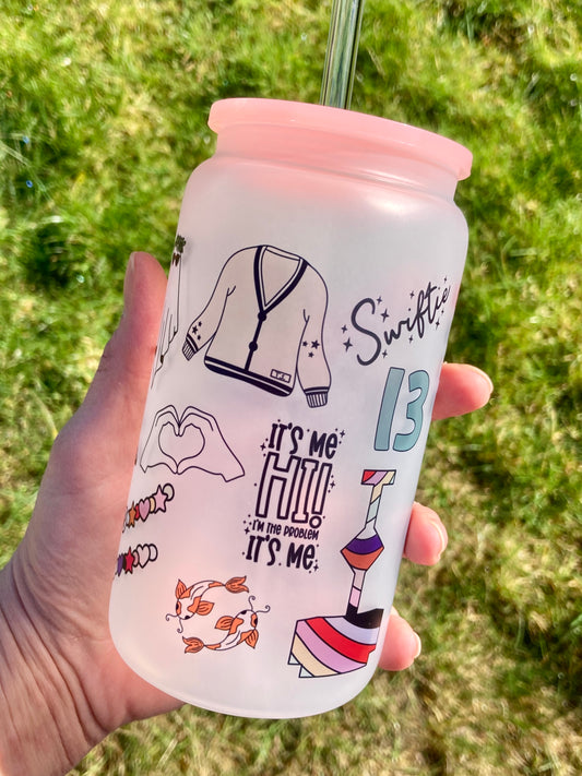 TS albums inspired - Libbey cup - glass can with pink lid and glass straw