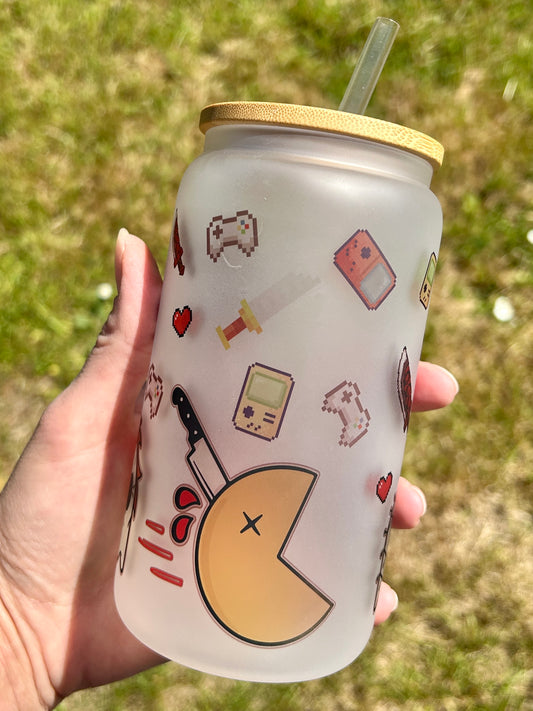 Pacman Horror Villains - Libbey cup - glass can with bamboo lid and glass straw