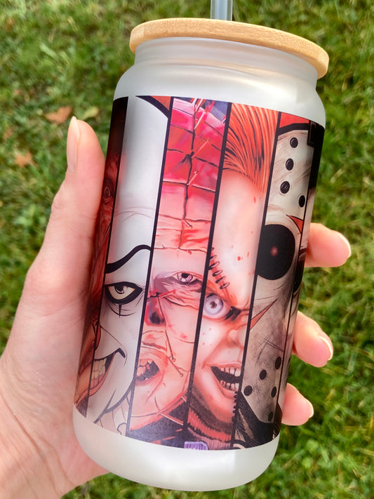 Horror Villains - Libbey cup - glass can with bamboo lid and glass straw