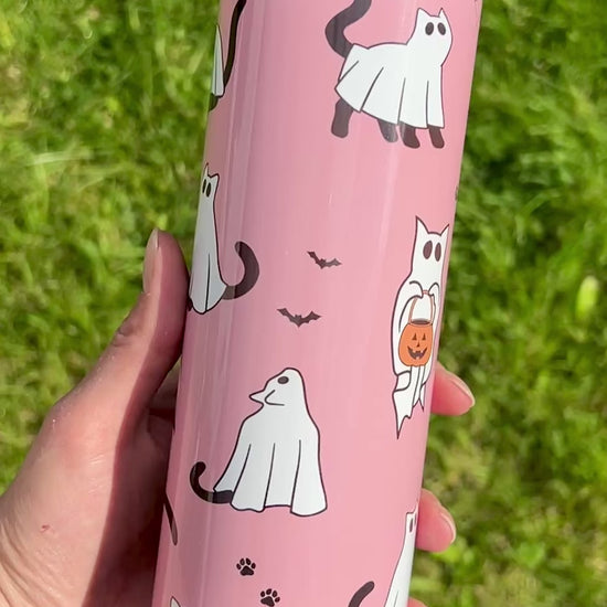 Ghost cats pink skinny tumbler