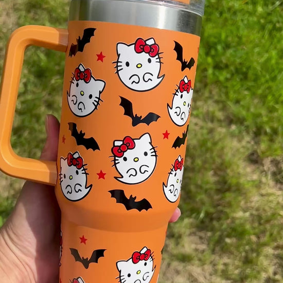 Ghost Kitty & bats - Orange - 40oz tumbler