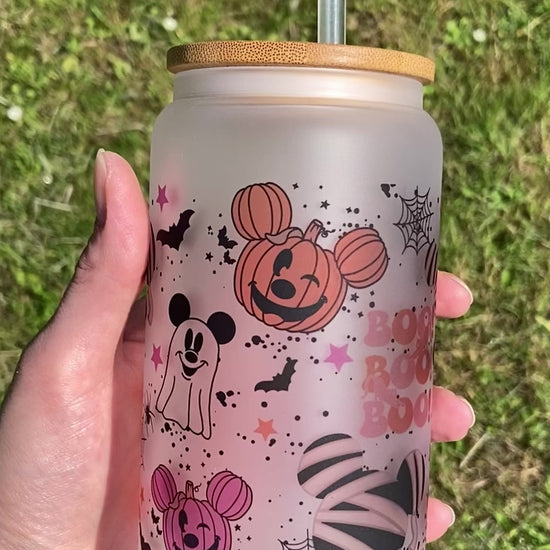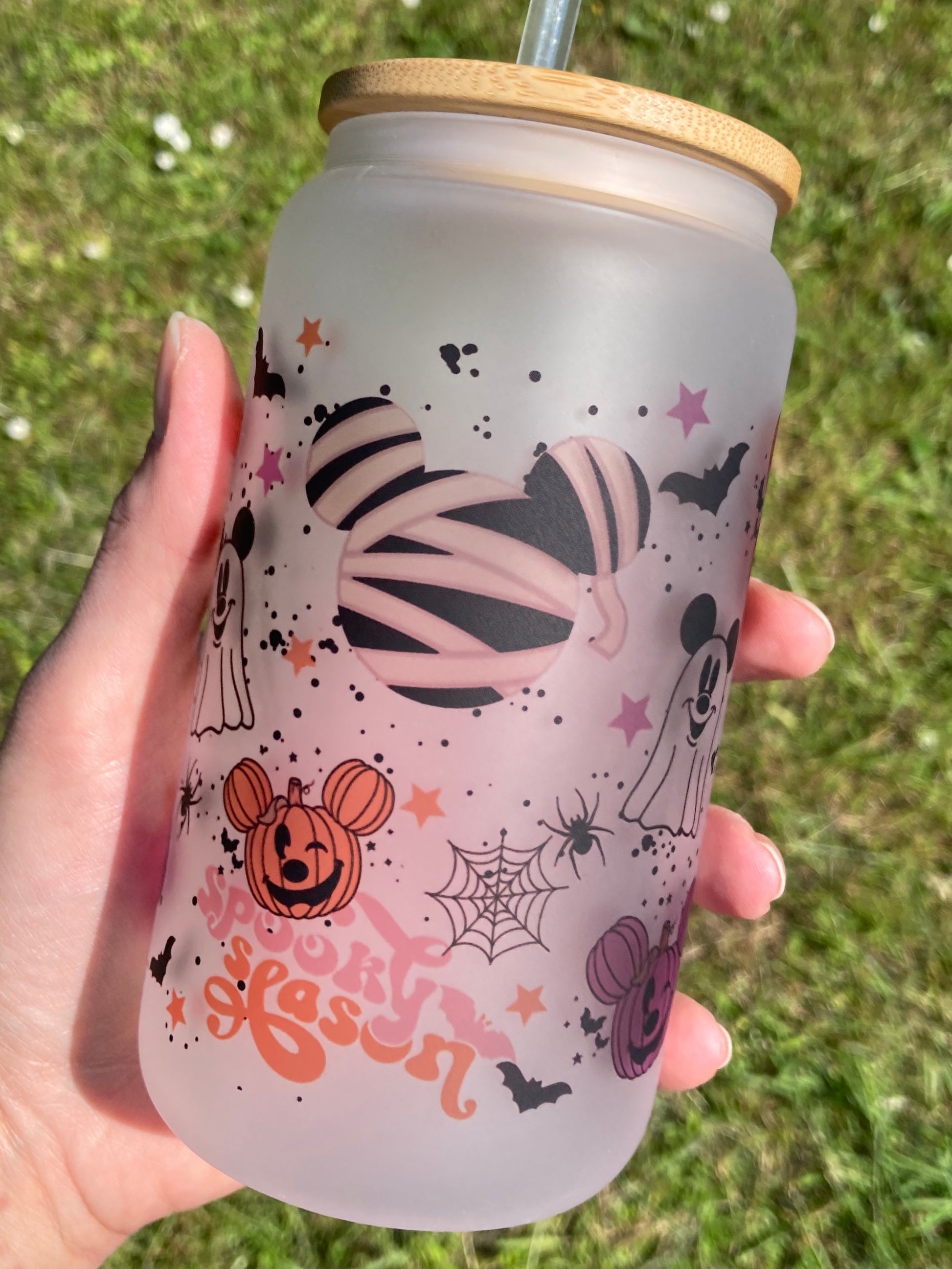 Halloween Mickey parks - Libbey cup - glass can with straw handmade
