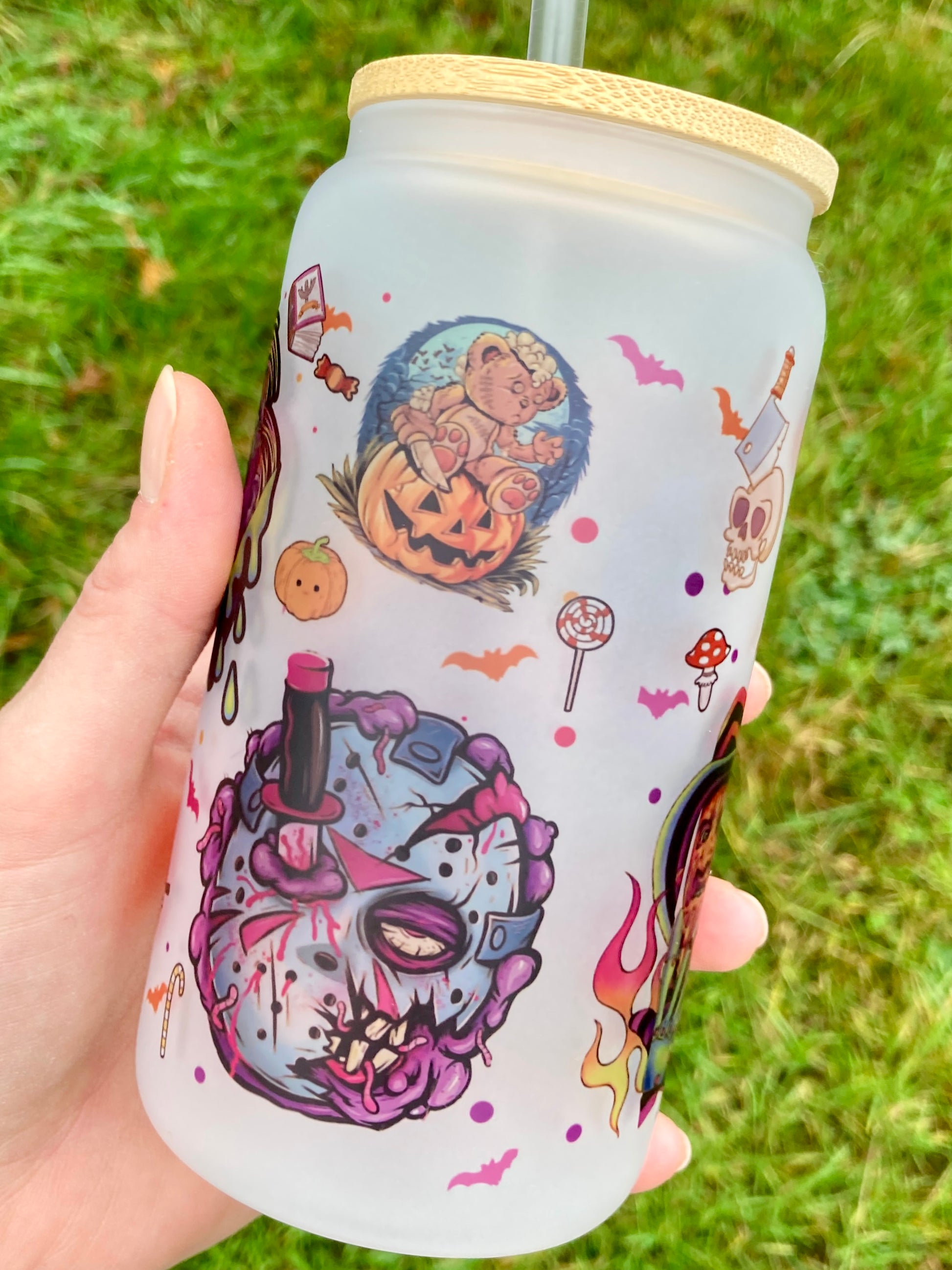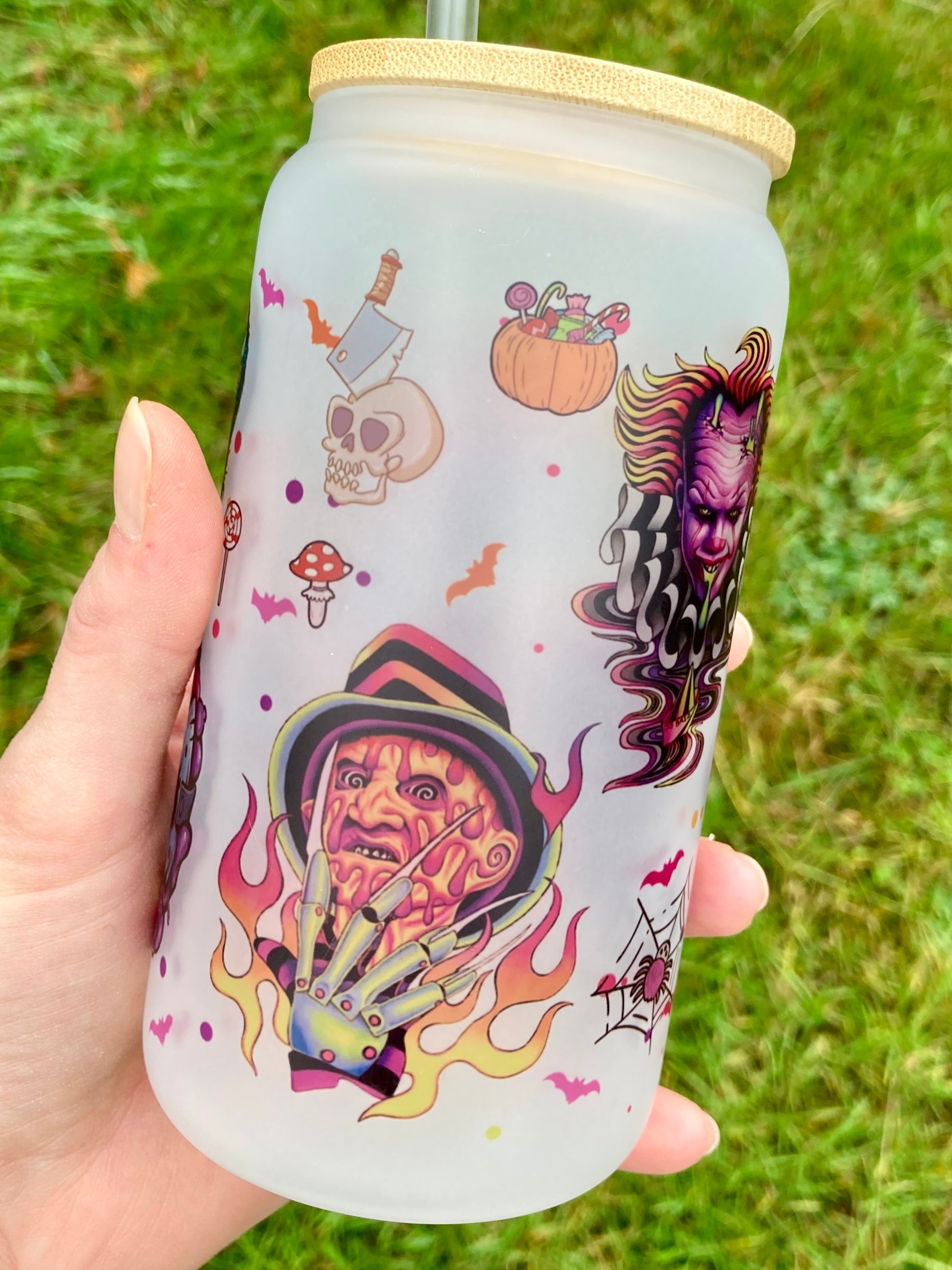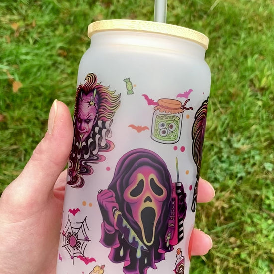 Horror Villains - Libbey cup - glass can with bamboo lid and glass straw