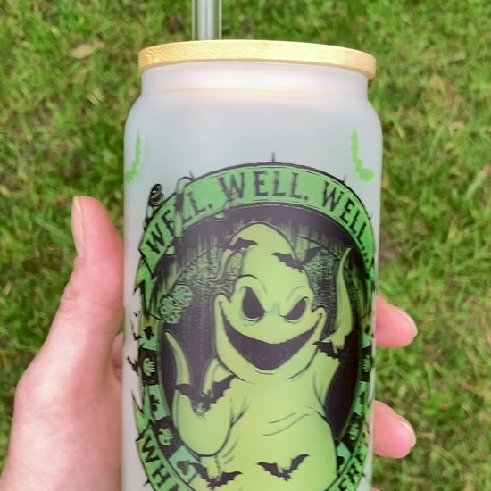 NBC Oogie Boogie - Libbey cup - glass can with bamboo lid and glass straw