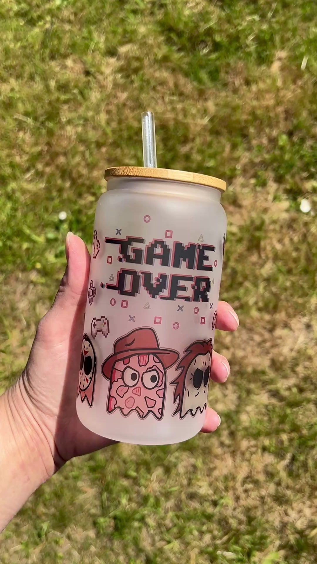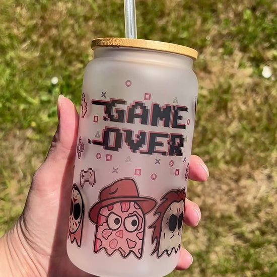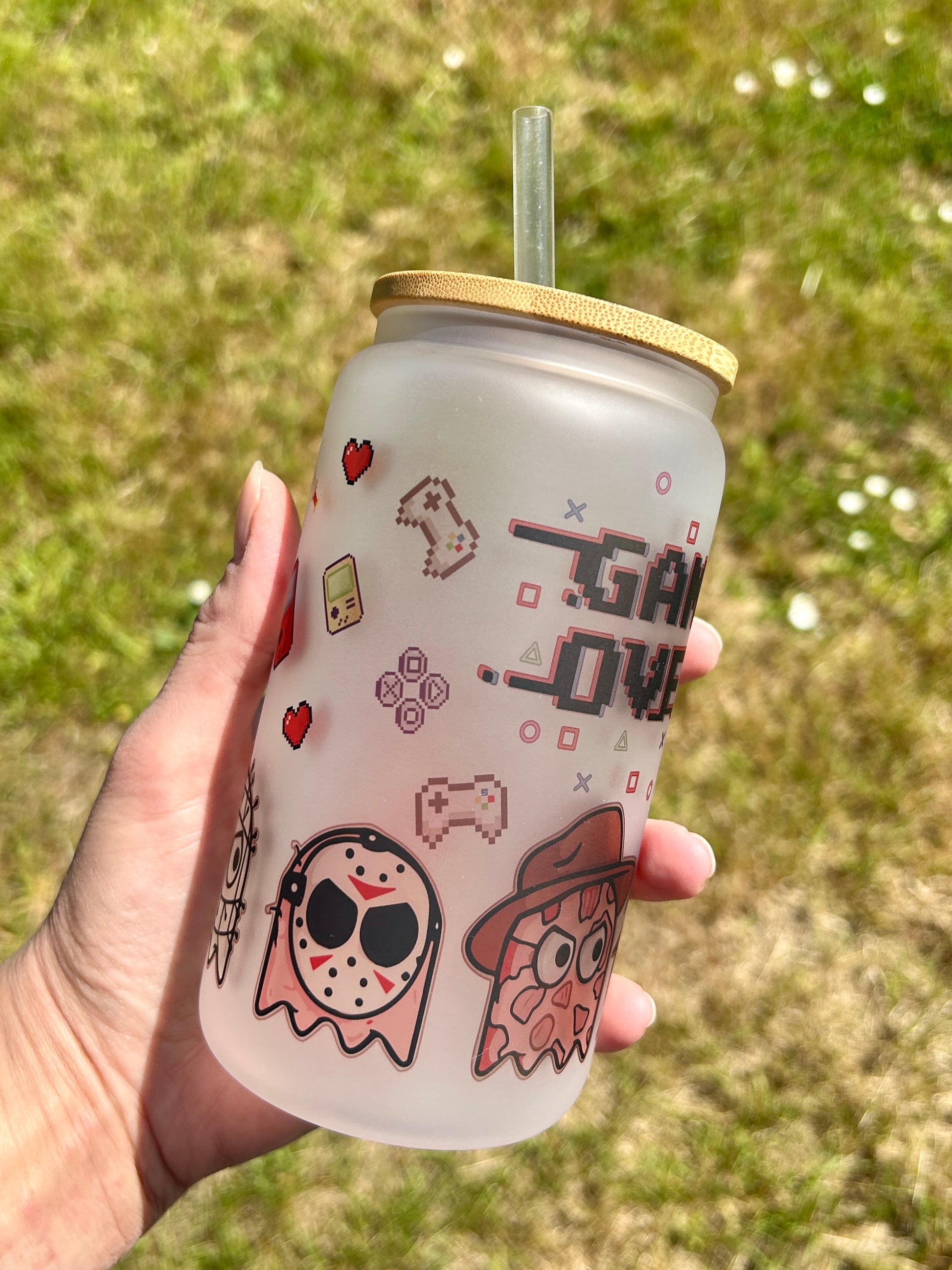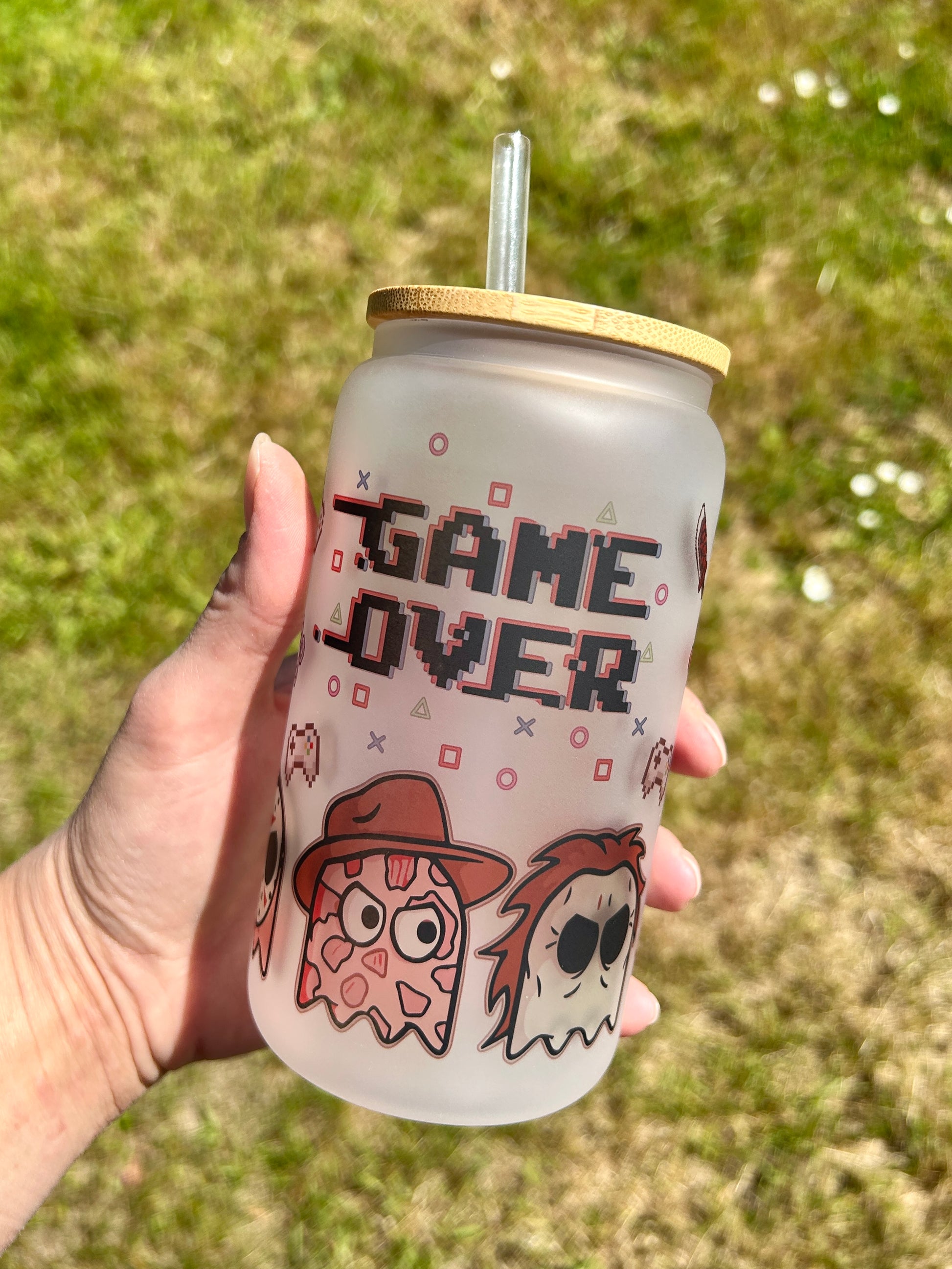 Pacman Horror Villains - Libbey cup - glass can with bamboo lid and glass straw