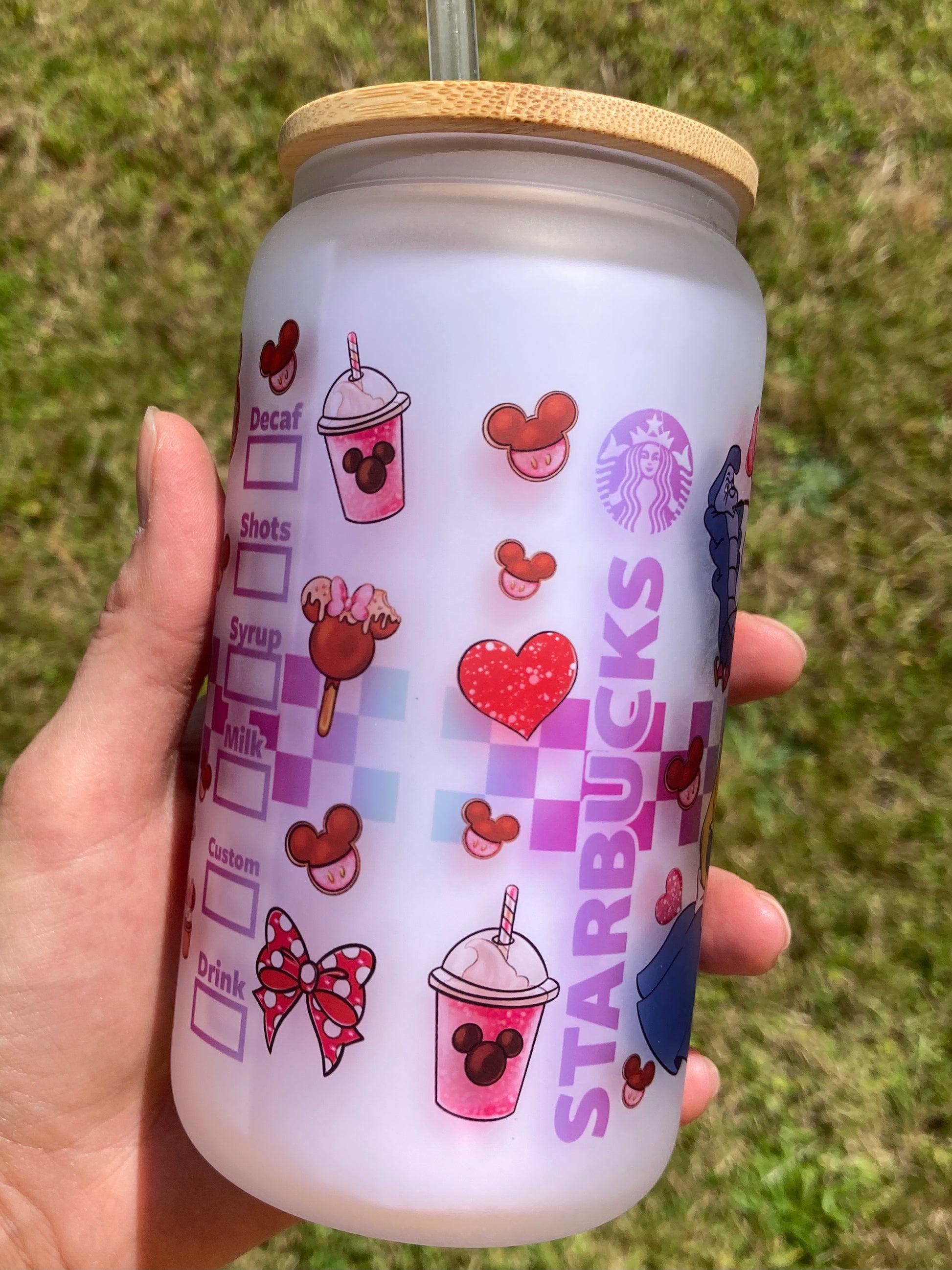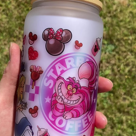 Starbucks Cheshire Cats - Alice in Wonderland - Libbey cup - glass can with bamboo lid and glass straw