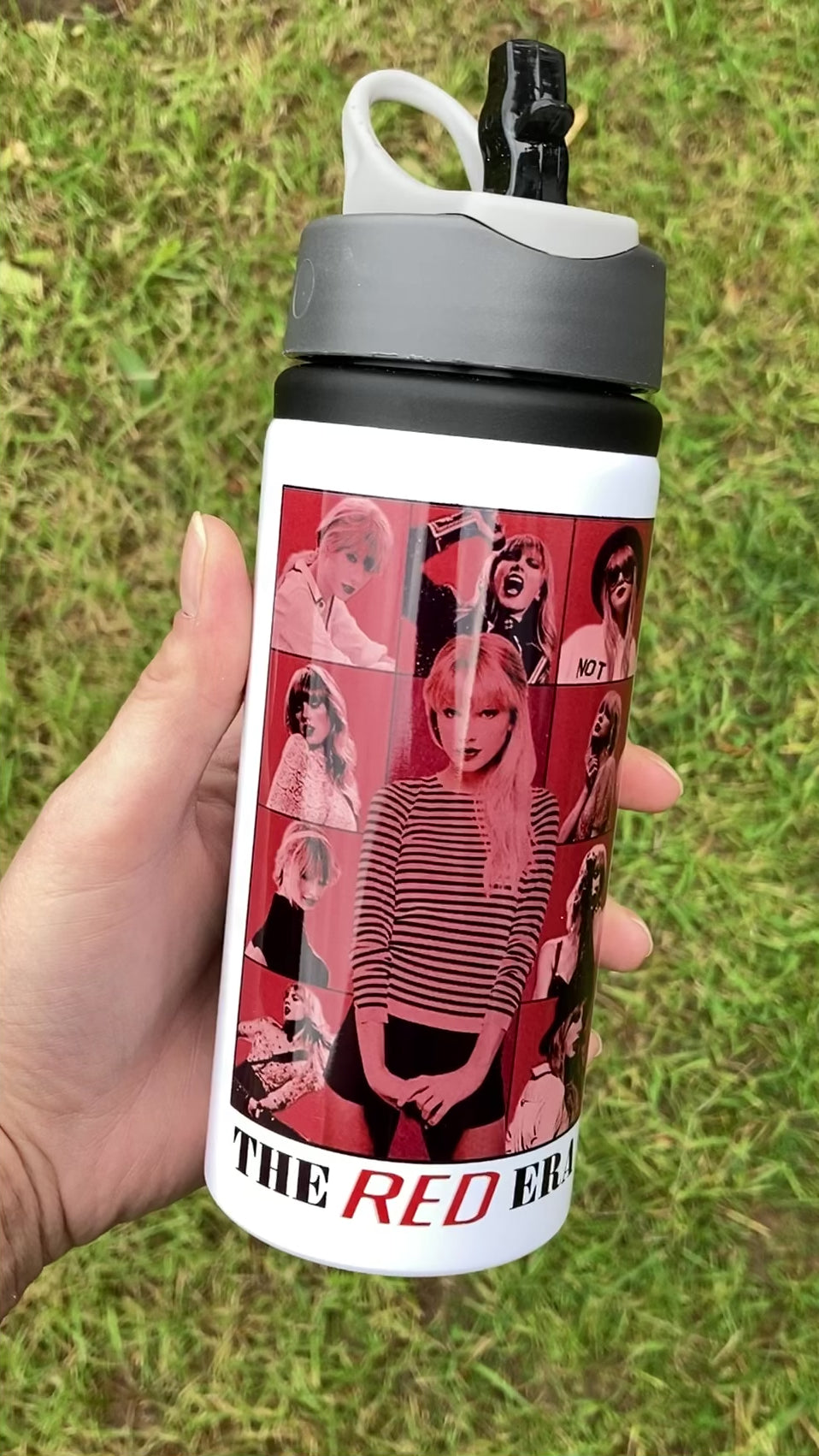 Quench your thirst in style with this 600ml water bottle, featuring a custom design inspired by Taylor Swift's Eras.