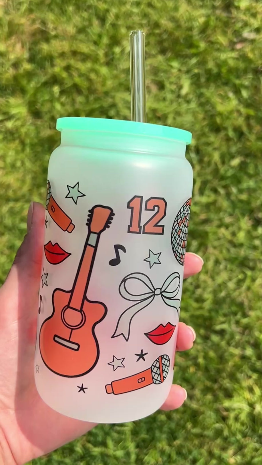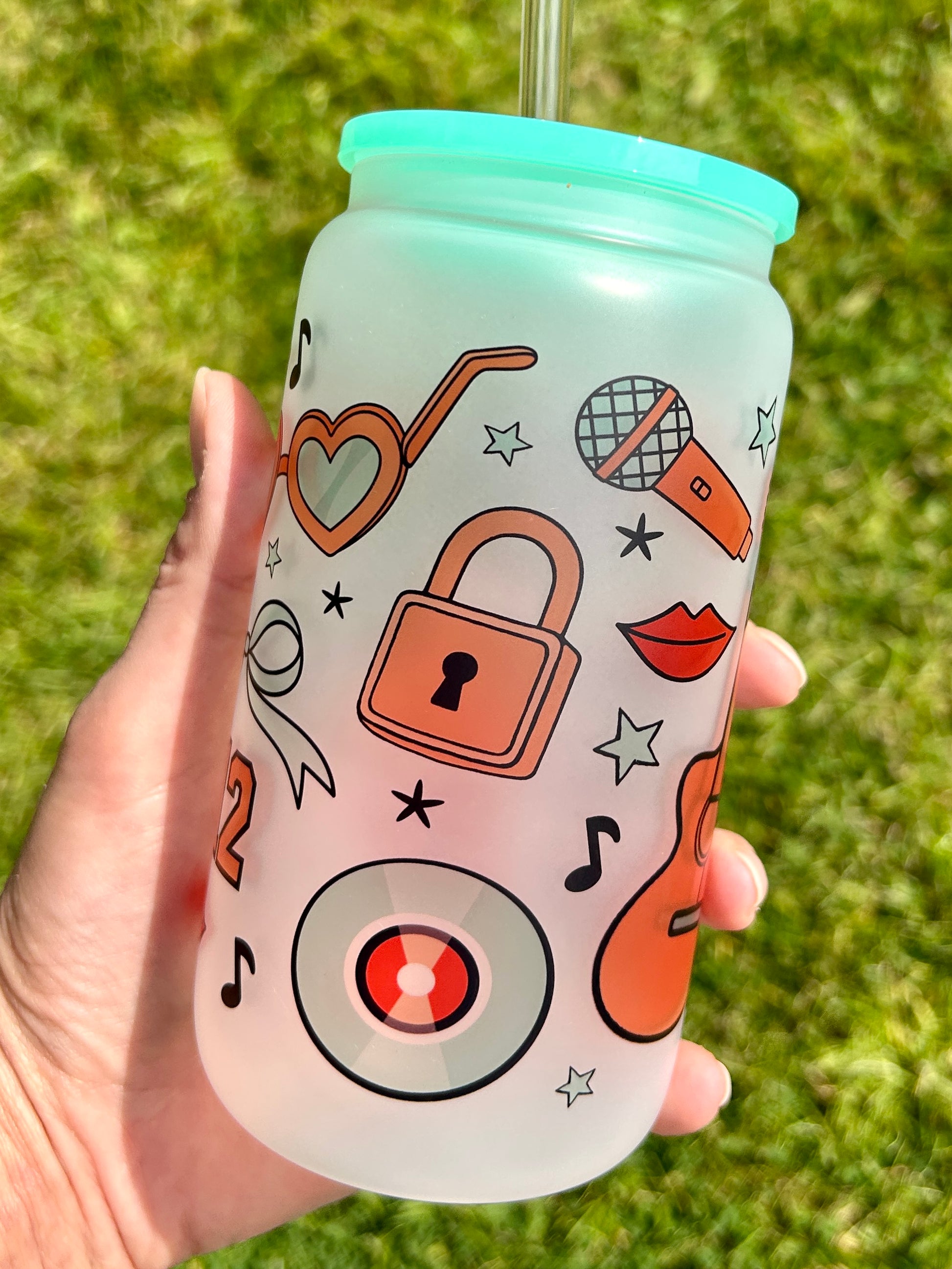 TS Showgirl inspired - Libbey cup - glass can with bamboo lid and glass straw