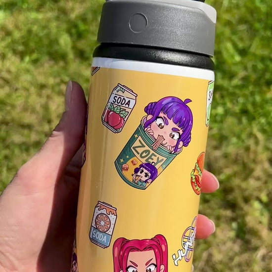 Quench your thirst in style with this 600ml water bottle, featuring a cute custom design.